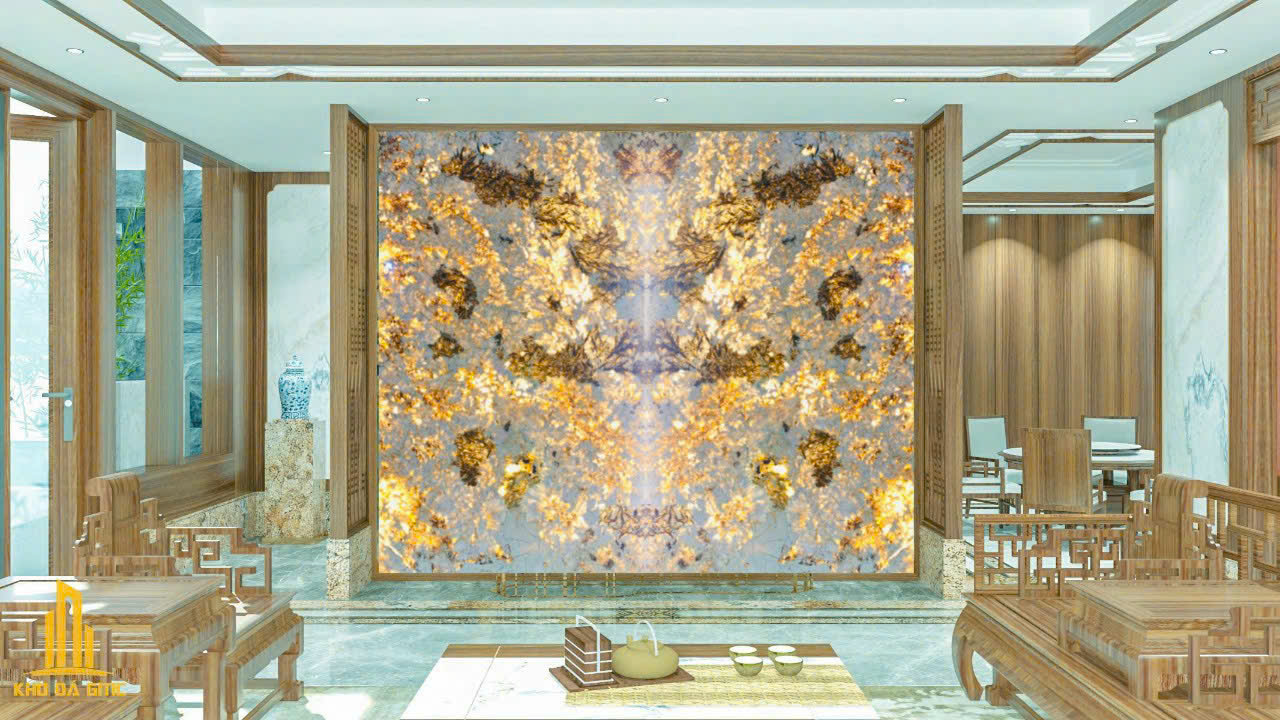 - Mẫu đá vàng ấm áp: Tạo không gian ấm cúng, phù hợp với phòng khách hoặc sảnh khách sạn.