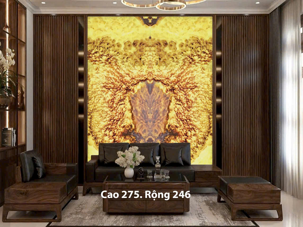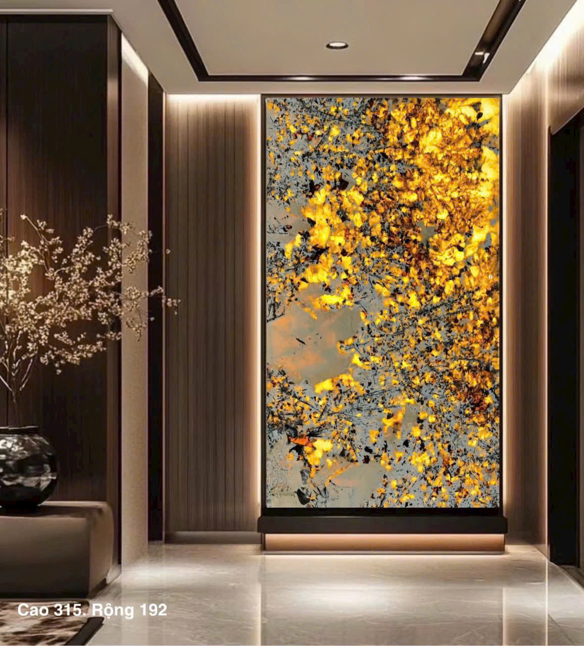 Tranh đá xuyên sáng ốp tường đang trở thành xu hướng được yêu thích trong thiết kế nội thất hiện đại. Mang lại vẻ đẹp sang trọng, độc đáo và tinh tế cho mọi không gian. Với khả năng kết hợp ánh sáng và các đường vân tự nhiên, tranh đá xuyên sáng không chỉ là vật liệu trang trí mà còn là tác phẩm nghệ thuật. Giúp nâng tầm thẩm mỹ cho phòng khách, sảnh khách sạn, nhà hàng hay spa.
